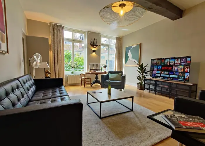 The 2-room La Venelle Saint-Nicolas is located nearly 5 minutes' walk from Vieux and only 0.7 km from Rue du Gros-Horloge. Situated just a short stroll from Notre-Dame Cathedral of Rouen, this spacious apartment overlooks the inner courtyard and features a courtyard and a garden.